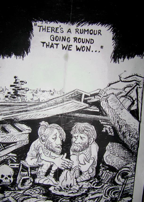 Drawing by our member Lib Rowlands-Hughes, back in the ‘80s, the MAD days. If we think of the effect of the huge modern military expenditure, and its effect on the environment, the comment remains pertinent today.